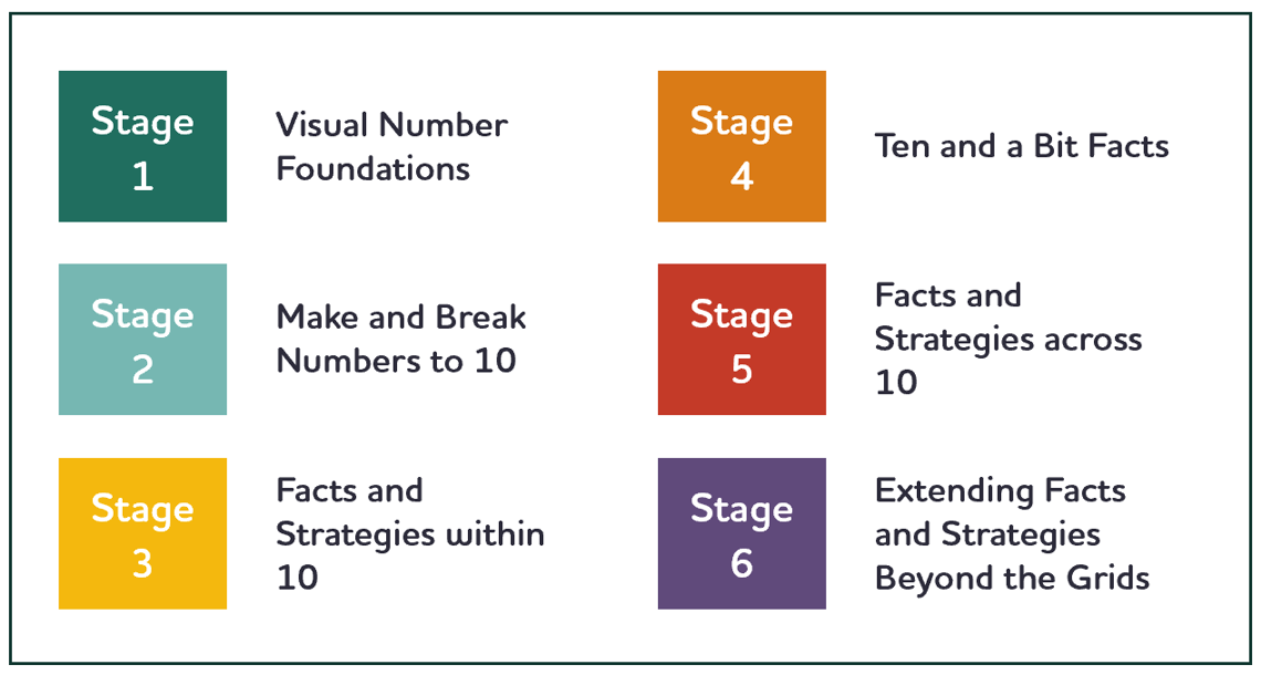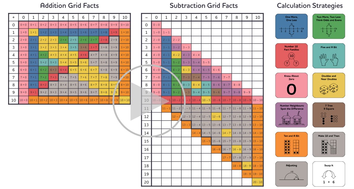 At the core of the programme are the Addition and Subtraction Fact Grids. These essential facts are the equivalent of times tables for addition and subtraction. Just as all multiplication and division calculations use root times table facts, all future addition and subtraction calculations use these root addition and subtraction facts.