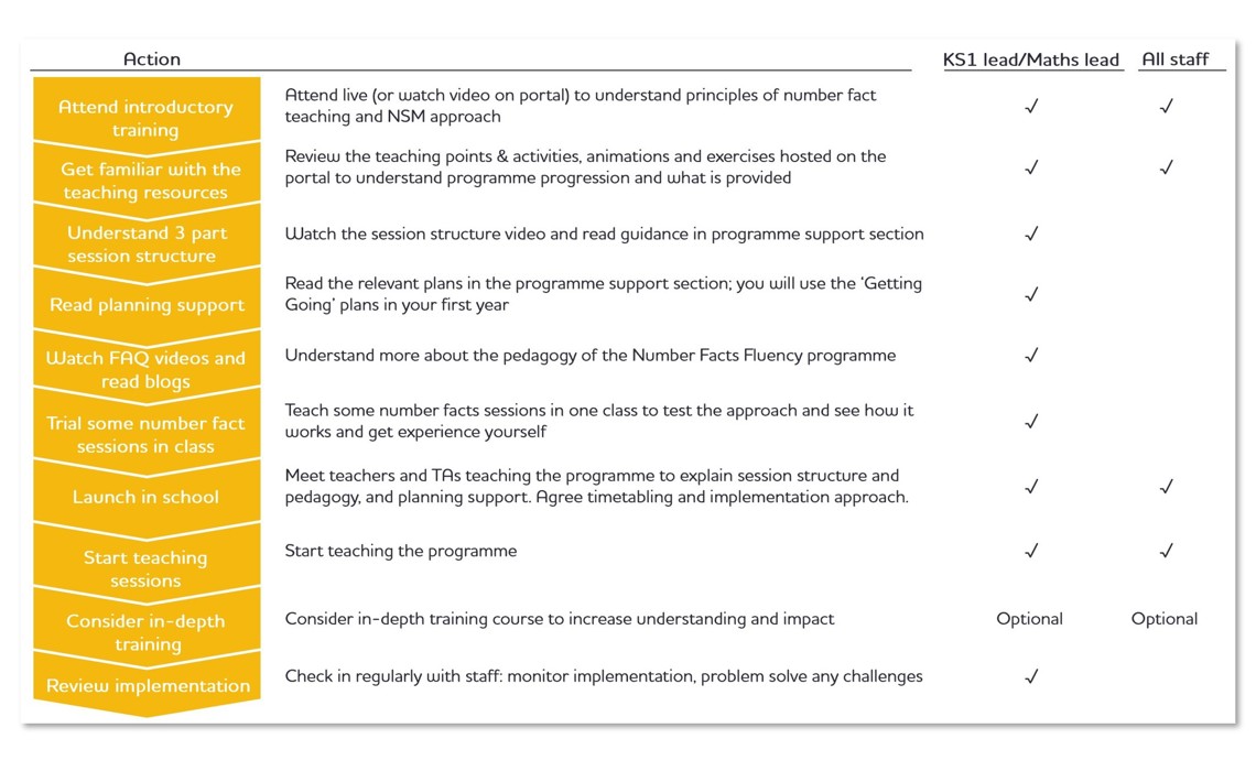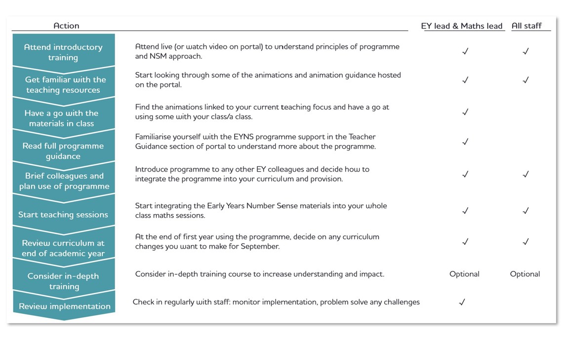 The actions listed below should be carried out by a combination of the Maths Lead, the Early Years Lead and the staff who will be teaching the programme.